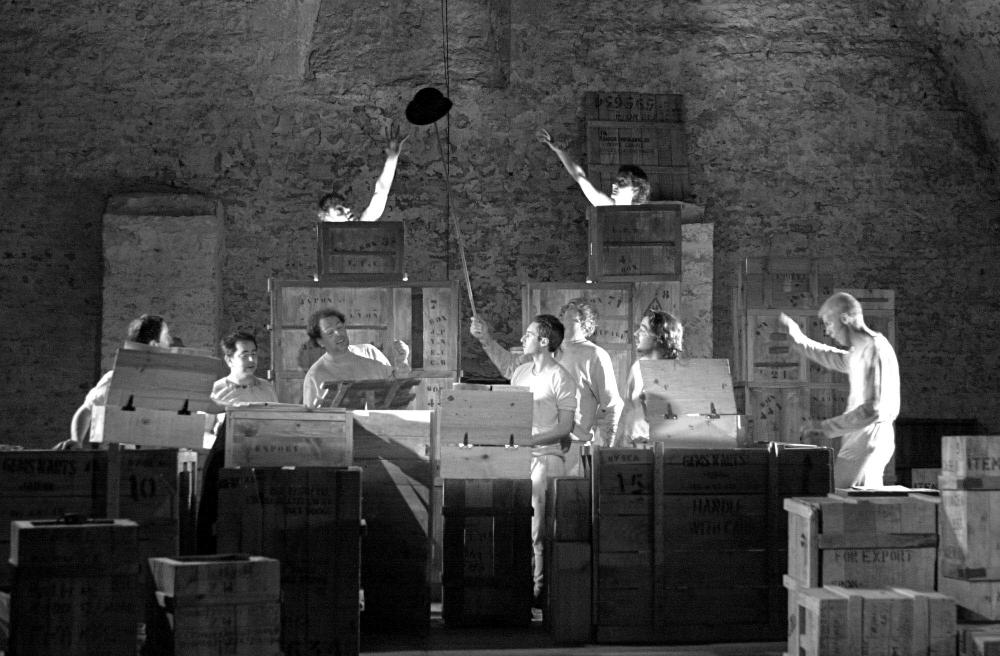 Que reste-t-il de ce naufrage ? Des caisses sont là, quelquefois éventrées. Il s’en échappe des paroles horrifiques et mots de gueules chers à Rabelais et son contemporain Janequin, des êtres étranges, un Dugong, quelques non sens , un Maki Mococo, des chants d’oiseaux, un chef d’orchestre, un chœur sans chef , une folle partition de Cathy Berberian… Quelques restes d’humanité, l’impérissable mémoire d’un navire battant pavillon réjouissant.